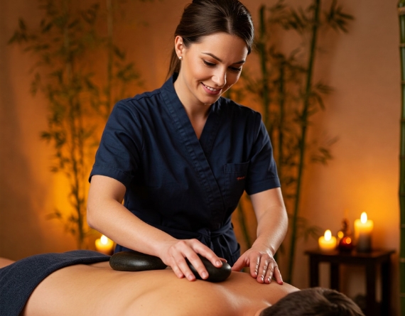Hot Stone Massage is a deeply relaxing therapy that uses smooth, heated stones placed on key areas.
