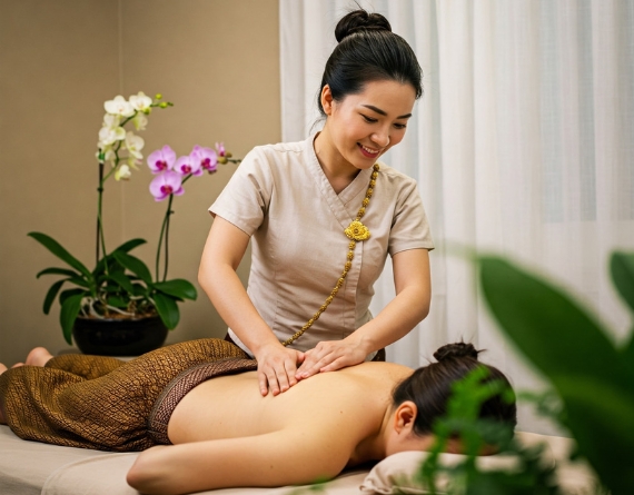 Tradtional Thai Massage is a traditional healing therapy that combines gentle stretching, acupressure, and rhythmic compressions to improve flexibility,